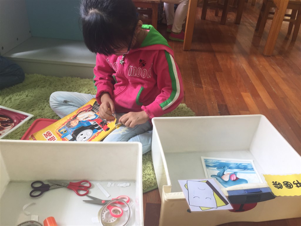 在修补图书的过程中,小朋友们动手动脑,掉下来的应粘在什么地方,固体胶怎么涂,透明胶双面胶怎么用,这之间既有分工又有合作。有个别孩子在修补时也遇到了难题,掉下来的纸页没有页码应该放在那里呢?教师则启发孩子动脑筋想办法,根据图书的情节自己给图书编故事,将掉下的页码修补上,这样不仅培养了孩子丰富的想象力和创编故事能力,还激发了孩子活动的积极性,培养了孩子参与劳动的品质。