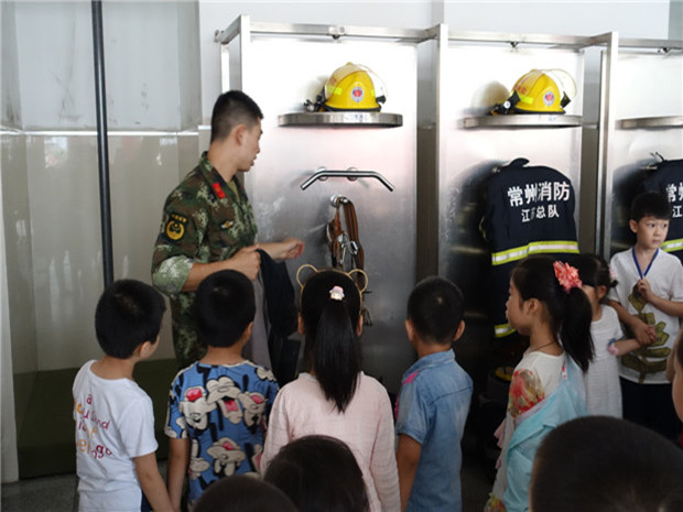 “这个是云梯”“这个叫高压喷射枪”“救火时要戴防毒面具穿防火衣”……在大班徐梓菡爸爸的带领下,孩子们走进常州市消防支队,与消防员叔叔来了一次零距离的接触。消防员叔叔向小朋友们介绍各种功能不同的消防车辆和消防救生器材,还为孩子们演示穿戴防毒、防火消防服,表演爬云梯、攀墙等本领。孩子们被消防员灭火救人的勇敢精神所折服,纷纷赞叹:徐梓菡爸爸真能干。