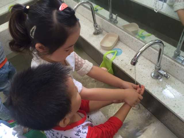 当孩子们看到小班,托班的弟弟、妹妹稚气的小脸,哭闹的身影会毫不犹豫地说:“我们不能再哭了,我们已经是小哥哥小姐姐了”。在和弟弟妹妹一起游戏中他们在弟弟,妹妹需要帮助时会主动伸出援手,扶一把,帮一下,俨然成了弟弟,妹妹的小小“保护伞”。