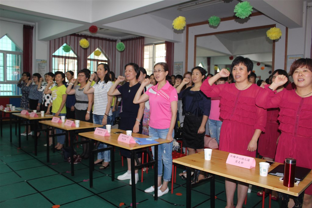 在鲜红的党旗之下,全体党员再次进行了宣誓,高举左手,面向党旗,诵读誓言,每一词每一句都融汇了天宁幼教全体党员的全部力量。