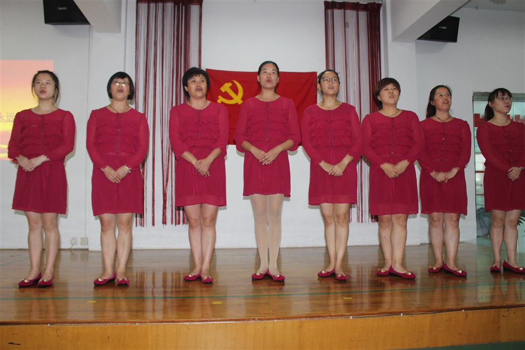 一曲激昂的国歌响起,全体党员起立,在庄严的国歌声中共同缅怀革命先烈,共同回忆党的历程。雄壮的国歌激起新老党员们的爱国热情,用全新的面貌和行动来回报祖国。