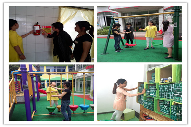 幼儿园安全检查小组在常玥园长的带领下,对幼儿园的食堂、园舍、场地、饮食卫生、周边环境、电器设备、大型器械、玩具、栏杆、教学设施、消防设施、安保等重点防火部位进行了细致检查;特别是台风“杜鹃”的来袭,可能会给幼儿园带来影响,更是做好了应急措施:如将班级物品进行抬高、在低洼处放置沙袋等。整个检查中安全措施到位,没有发现安全隐患,确保幼儿园“国庆”期间安全稳定。