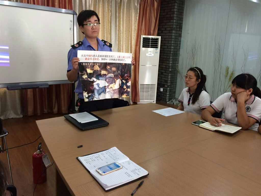 教员结合我国近年来发生的典型火灾案例,图文并茂地介绍了火灾造成的悲惨后果,同时介绍了一般火灾的发生过程以及日常防火、灭火的基本常识,纠正了一些消防误区,提高了教师的消防安全意识。讲座中,教官为教师们演示了灭火器“一摇”、“二拔”、“三喷”操作规程及其他不同种类的逃生、自救消防用具的使用。