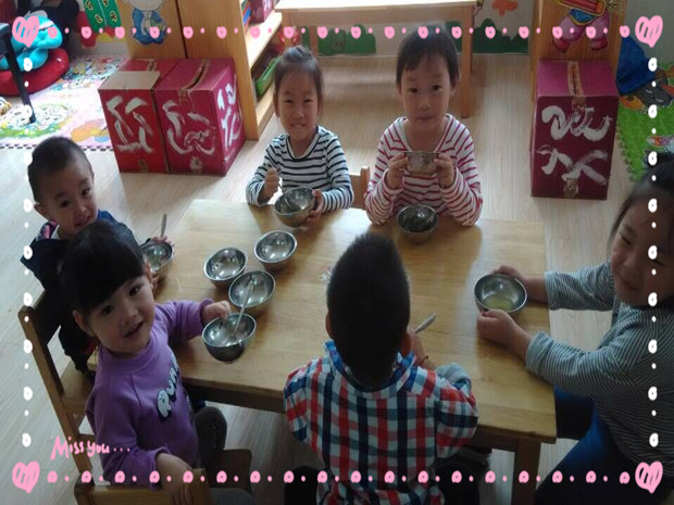 小班级部的老师让每个孩子认识了各五谷杂粮,还知道了一日三餐吃的米饭都是由稻子“变”出来的,各种粮食都是农民伯伯辛苦种出来的。由此教育孩子在午餐时做到“三净”,即碗净、桌面净、地面净。