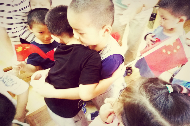五星红旗是中国的标志性旗帜,是国家的象征。作为一名“生在红旗下,长在新中国”的小小中国娃来说,认识五星红旗是十分重要的。所以在建国66周年即将到来之际,娑幼的孩子们围绕国旗,以歌唱红歌为主线,回顾伟大祖国光辉的历程,开展了唱红歌,讲述革命故事等活动。表达了孩子们对祖国妈妈最美好的祝愿。大班中班的哥哥姐姐带着小班的小朋友手中摇曳着国旗,衣服上贴着醒目的微型心形红旗,互相拥抱,高唱国歌,表达了小朋友对祖国妈妈深深的赞美和热爱。