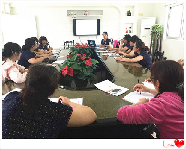 保健蔡老师首先向大家介绍了手足口病的症状、潜伏期、传播途径等一系列有关传染病的知识。接着,重点介绍了幼儿园所必须采取的预防措施,布置传染病流行期间教职工每天所要完成的工作,如:向幼儿宣传不得带自己的玩具入园;教师每天早上、中午、下午三次体检,了解每位幼儿有无手足口症状;教师教授幼儿学习“六步洗手法”;保育员每天对玩具进行消毒;教师每天9:30左右联系缺席幼儿家长,询问未来园原因;教师对幼儿家长宣传传染病相关知识。最后,蔡老师讲解并分解教授了全体教师“六步洗手法”。