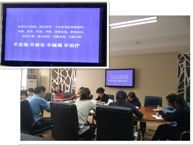 幼儿园重视相关部门组织培训,尤其是保健医,要了解最前沿的防控知识,并对教师和幼儿进行正确的指导。通过教师例会,对老师们进行传染病相关知识培训,如诺如病毒的流行特征、手足口病的基本常识、预防控制措施21条、环境和物品预防性消毒与灭菌方法等,要求所有教职工都能够熟练掌握。