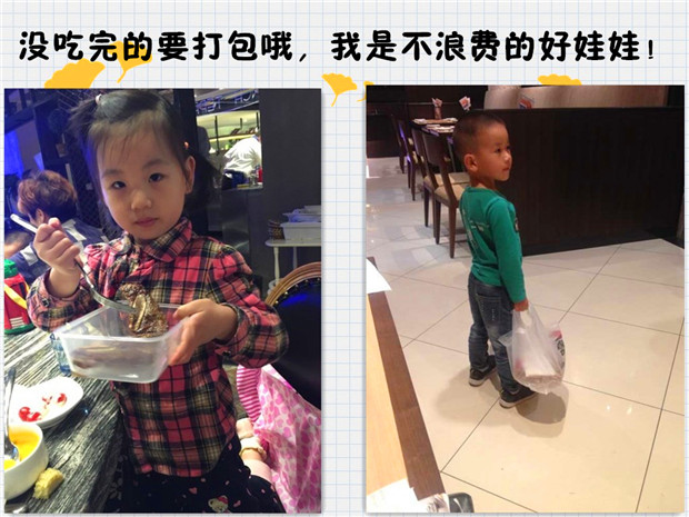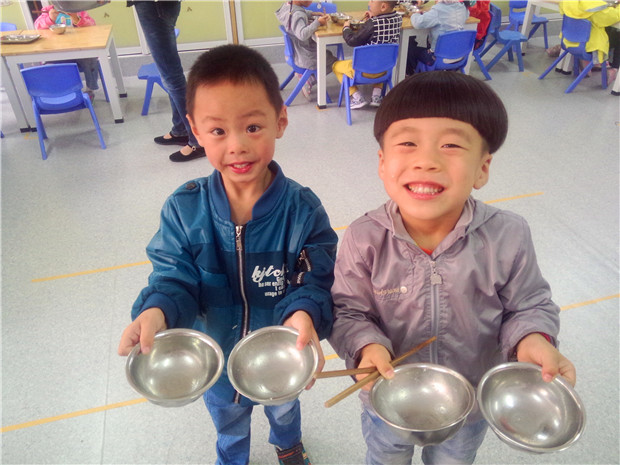 老师们精心策划各种活动来引导孩子们进行“光盘行动”。孩子们从“谁知盘中餐,粒粒皆辛苦”的诗歌中体会到农民伯伯的辛苦;在情景剧《浪费的小猪宝宝》中,孩子们明白了浪费可耻、节约光荣。每当吃午饭的时间到了,伴随欢乐的音乐声响起,老师把可口的饭菜分发给孩子们。孩子们都会懂事地拿起勺子、筷子,大口大口地把饭菜送进嘴里,吃得可香了。重要的是,他们把碗里的饭菜吃了个精光!连桌子上也一粒米都没有。此外,还通过家园配合,来进一步帮助孩子养成“光盘”的好习惯。在宣传栏上,向家长提倡“光盘行动”,让家长在家以身作则,做好孩子的榜样,并随时提醒、督促孩子吃完饭菜。另外,外出就餐时,点少量菜,如果吃不完实行打包,让孩子把这些行为都看在眼里,这样才能更好的培养孩子的“光盘习惯”。