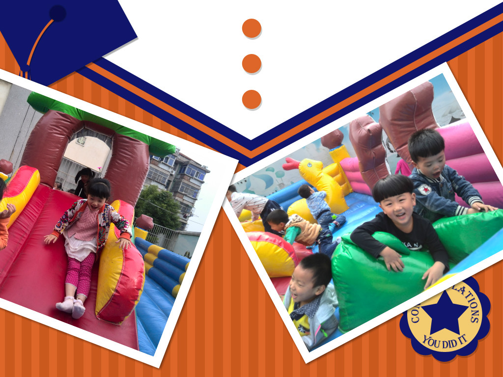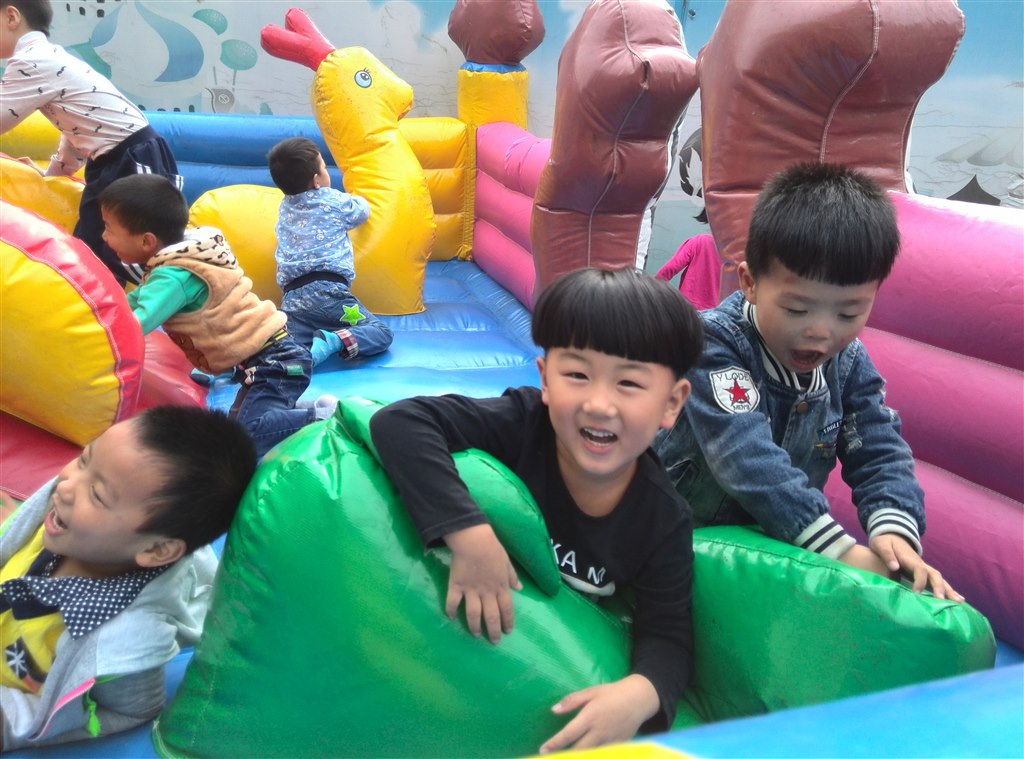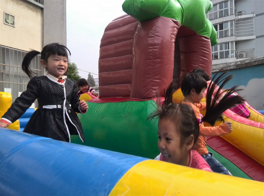 丽二幼的操场中出现了一个神奇的城堡,吸引了孩子们全身的细胞。一脱完鞋子爬上气垫城堡,孩子们对运动的热爱便尽情绽放了。不需要老师告诉孩子,怎么爬、跳,如何平衡,他们在游戏中就是自己的老师,不停的跳跃、翻滚,努力保持身体的平衡和伙伴嬉戏。孩子们的欢声笑语回荡在幼儿园的各个角落,操场上正“翻滚”着这欢快的音符,谱写着幸福的乐章。