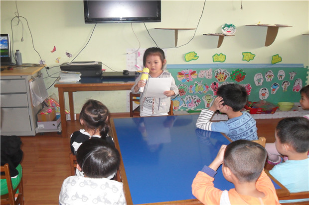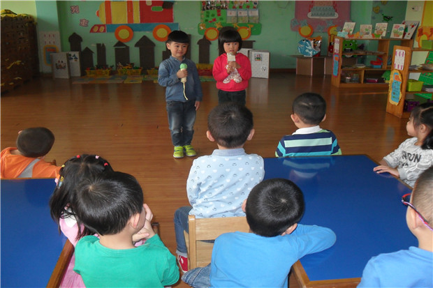小朋友升到了中班,对身边发生的事越来越感兴趣了。为了能使孩子更关注自己身边的事,也让幼儿提高语言表达能力,近日彩虹幼儿园中班开展了《小主播说新闻》的活动。小朋友在家长的帮助下,收集新闻里的事件或者发生在身边的事,可以是家长记录下来的,也可以是小朋友画下来的,到幼儿园讲给小伙伴听。 一个个小主播手持话筒,有板有眼地说着新闻,俨然一个播音员的样子。这些小小主播来自于班中的任何一个孩子。播报的内容从新闻时事到与孩子生活、学习相关的话题,从科学小知识到和主题活动内容相关的知识,从天气预报到安全卫生常识,应有尽有。