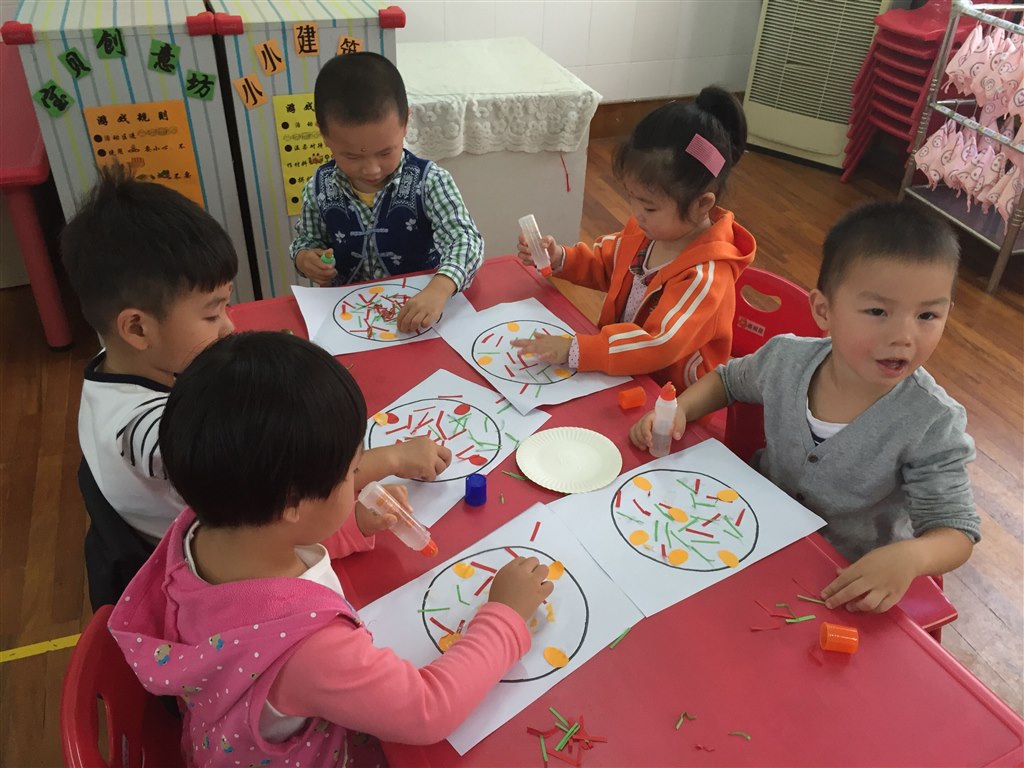 活动中,幼儿在“做”重阳糕的过程中,感受浓郁的节日气氛,大胆发挥幼儿自身独特的想法与创意,感受绘画的快乐,把最好的爱献给老人。