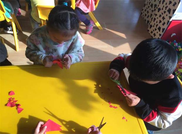 剪窗花是一种艺术,是美的熏陶,美的享受,其实艺术就在我们身边,人们的一举手、一投足、一段生活场景,都是艺术,只要我们留心观察,身边都是美的源泉。在剪窗花的过程中,幼儿都对窗花的对称美产生了浓厚的兴趣。在自己动手时,手中的小剪刀沿着弯弯的、平平的小路来来回回的走着,调皮的咬出三角形、圆形等形状,在老师生动的语言讲述中幼儿学习着中国传统手工艺文化,创新着自己的思维,发挥着自己的想象。