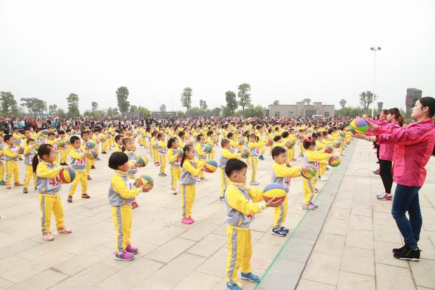 运动会上孩子们带来了别样的运动项目,团体节目表演:节目一:小班花样单手连续球操表演。节目二:中班双手交替花样球操表演。 节目三:大班往返跑花样球操表演。比赛项目:1、幼儿竞赛类:小班—小兔子上学。中班—羊角球大战。大班—纸球大战。这些出现在操场上的体育活动项目瞬间变成了一台精彩的演出,小小球儿在孩子们的手里似乎都有了魔法,竟能跟着音乐节奏一起舞动。单手拍、双手拍、交替拍、连续运球都能得心应手,几百多名孩子整齐划一的拍球本领引起了全场观众的阵阵喝彩……让每一个在场的都震撼!比赛结束,夏历芳园长还为宝宝们颁发了闪亮的金牌。