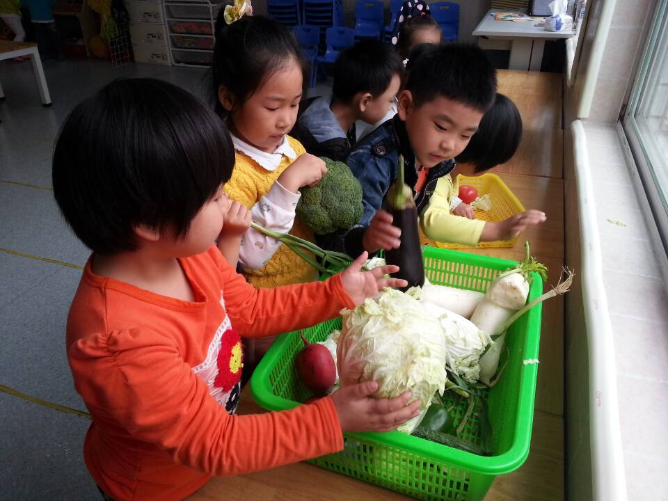 虽然短短一个小时的参观活动很快就结束了,但孩子们似乎意犹未尽,一路上还兴致盎然地交流着自己的发现。回园后,孩子们更是充分调动感官,从颜色、形状、气味等方面对蔬菜进行了感知,丰富了菜场之行的内涵。