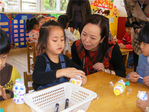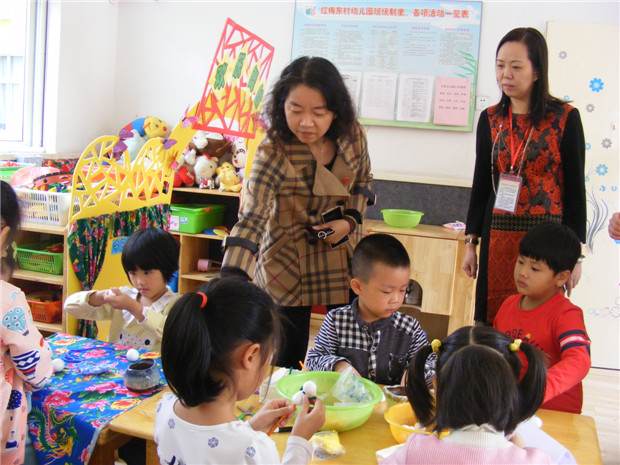 顾园长在朱薇园长的带领下,观摩了每个班的陶艺区域特色活动,认真聆听了各班老师的一些教学想法,看到了孩子们专心致志地投入于自己的创作活动,顾园长认为红东幼“美陶乐陶”特色办园思路清晰,能把一切工作的落脚点放在促进幼儿身心和谐发展上,《纲要》、《指南》等教育理念已经深入幼儿活动,幼儿园开放式的幼儿教育理念给予了高度评价;同时还结合幼儿的年龄特点,对区域活动中的亮点以及可有待进一步挖掘的地方提出了自己的一些看法。