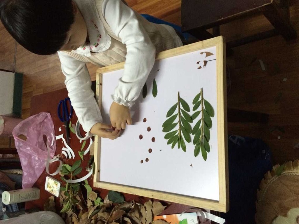 新世纪幼—树叶拼贴画,朴素也精彩