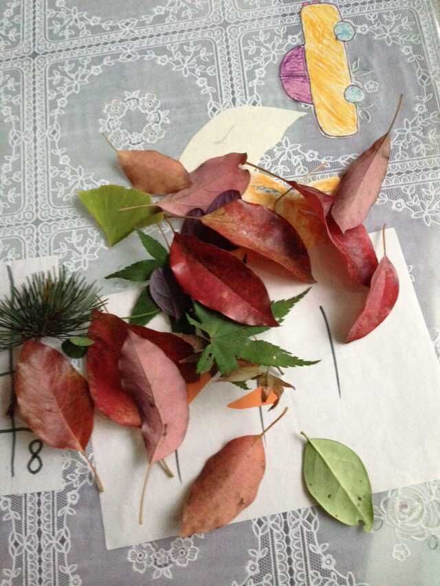 孩子们正在专心致志摆弄着手中的树叶,这些金黄淡绿、形状各异的枯枝落叶在他们和爸爸妈妈的手中摇身一变,变成了一幅幅精美的树叶画:有“蝴蝶花儿开”,有“美丽的孔雀”,“ 快乐的毛毛虫”“金鱼戏水”…一幅幅漂亮的树叶贴画营造了秋意浓浓的氛围。