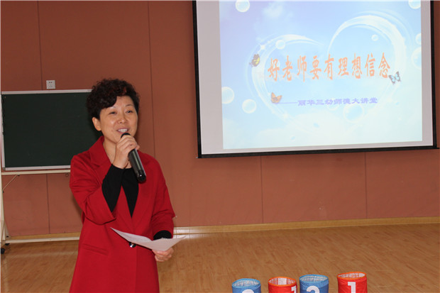 教师像一条“渐行渐宽”的河,在平和而从容的自我超越中,在真诚而宽厚的爱中,微笑着默默行走,矢志不移地追寻着做教师的职业幸福。在第30个教师节前夕,习近平总书记在北京师范大学考察并发表重要讲话,对做好老师提出四点要求,其中第一就是要有理想信念。为了提高我园师德师风水平,加强教师队伍建设,努力建设一支有理想有信念的教师队伍,我园组织全体教师开展了以“好老师要有理想信念”的师德大讲堂活动。