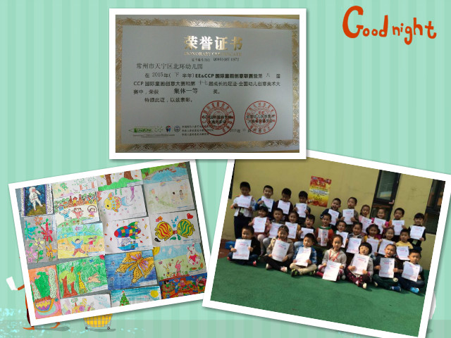 在此次比赛中,我园一共选送了127幅作品,获特金奖作品11幅,有91幅作品获得金奖、25幅作品获得银奖,幼儿园集体荣获《国际童画创意大赛集体一等奖》,钱佩华、曹建