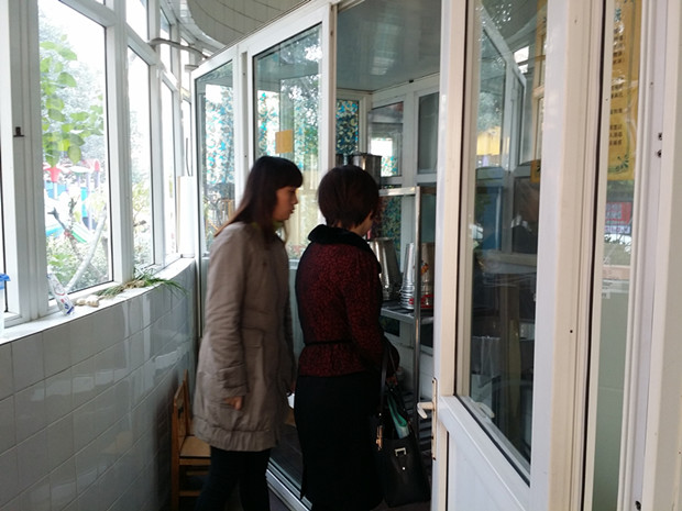 在检查过程中,吴园长首先从食堂开始,对食堂的安全工作、卫生防范进行仔细的观察,并对工作细节展开询问,了解详细的工作环节,及时提出一些小细节工作要求。然后,又对园所环境、班级环境、活动室安排等进行了巡视,特别是对我园新增的建构室、图书室和音乐室给予了肯定。最后,正好我园在开展的青年教师园内公开课展示活动,于是聆听了青年教师的教学展示,对青年教师的教学提出了中肯的评价。