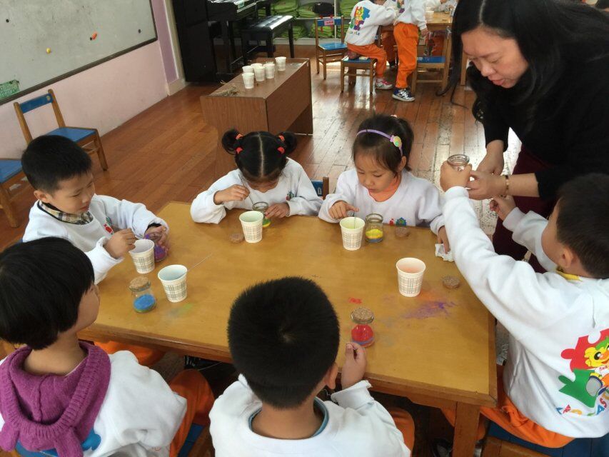 我们的外教Yvonne老师也被这美丽的手工制品吸引,欣赏着小朋友的作品,并用英文向小朋友交流了沙瓶画的名称,小朋友使用的颜色等等。孩子们在宽松、自由的氛围中制作了具有异域风情的手工,虽然约旦与我们相距甚远,但是以美术为代表的视觉艺术最能充当国际交流的使者,孩子们显然已经深深的感受到大自然赋予约旦的美丽景色。本次活动不仅提升了孩子欣赏美、创造美的能力,更是拓展了孩子的国际视野,深化我园的国际理解教育课程。