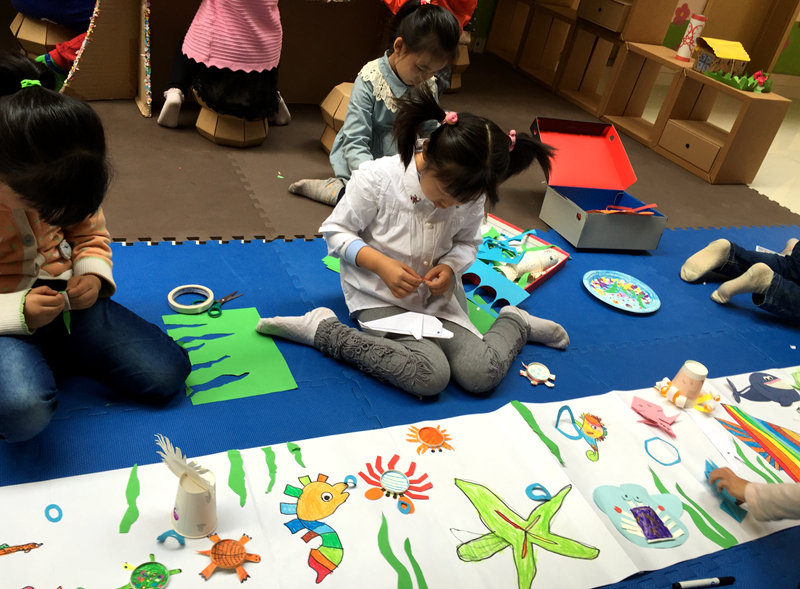 本次拍摄主要分为三大板块:第一板块是在创意美术室里孩子们根据现在开展的主题进行了纸浆创意、纸影游戏、纸管创意搭建,让幼儿的在游戏活动中、在与材料的互动过程中,与同伴相互交流、相互碰撞,激发幼儿创造性思维;第二板块是在活动大厅孩子们运用多种纸质材料和废旧材料,利用剪、贴、撕、折等方式将纸艺文化巧妙地融入到每个主题活动中,仿佛将电视台的叔叔阿姨们带进了一片“纸的海洋”,让人流连忘返;第三板块是在户外操场上,幼儿利用废旧的纸盒自由搭建,让孩子们自主游戏、自由探索。摄影师扛着摄像机都不舍得放下,怕是一不小心漏拍了优美的画面。