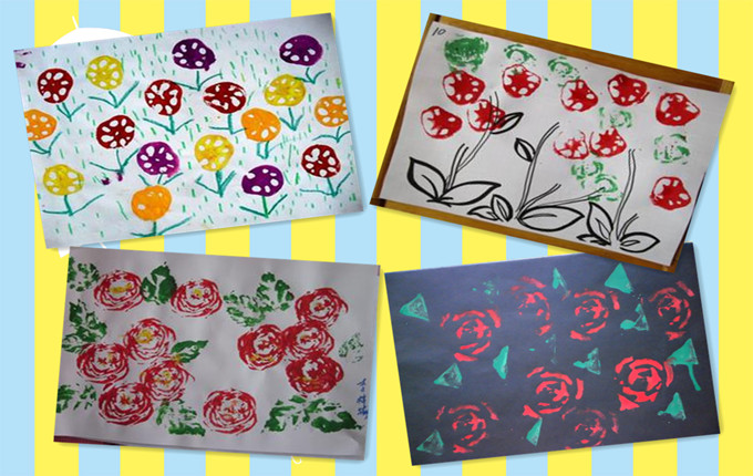 近日娑幼小朋友开展了“奇妙的蔬菜印画”活动。孩子们在了解各种蔬菜的形状、用途后,大胆地尝试把蔬菜从不同的面剖开,他们发现了奇妙的现象:藕上出现了一个个大小不一的小洞洞、青椒变成了镂空花瓣、胡萝卜变成了小圆盘……老师和孩子们一起把萝卜、黄瓜等蔬菜刻成五角星、十字花等图案,一起蘸着自己喜欢的颜色进行了印画创作。你们看,藕印画出了游乐场的“摩天轮”,青椒印画出了漂亮“花朵”,胡萝卜印画出了“圆圆的月亮”,黄瓜印画了出“闪闪的星星”等等。不一会儿一幅幅别致的蔬菜印画就呈现在我们的面前。此刻的孩子们是如此的兴奋和喜悦,充满了对自己完成作品后的自豪感和满足感。