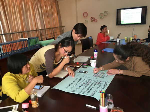这种体验式活动促使教师在富有挑战性和趣味性的活动中,不断地调整自己原有的认识,建构新的认识。在紧张、有趣、合作、分享的氛围中,脑力激荡、智慧碰撞。