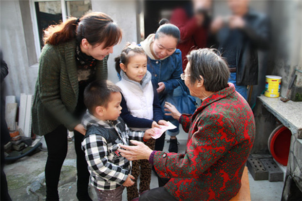 在新沟村村委领导的带领下,老师和孩子们走访了村里几户贫困家庭,了解他们的家庭境遇,并由幼儿代表亲手将善款交给独自居住的孤寡老人。孩子们一声声甜甜的问候、一个个暖暖的拥抱感动了现场所有的人;所送上的慰问金也缓解了贫困家庭的燃眉之急。
