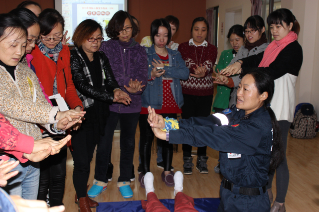 安全是幼儿园工作的重中之重,为了提高教师的安全意识,增长教师的急救知识,使教师能在幼儿园突发事件中运用一些简单易行的急救知识去进行急救,降低对幼儿的伤害程度。2015年11月13日上午丽华第三幼儿园邀请蓝天救援队来园为全园教师开展了急救知识培训,现场开展急救技能的实战训练。