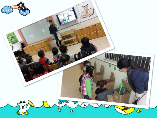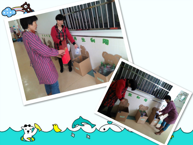 为了更好的落实环保教育,幼儿的日常生活和家庭就是很好的两块教育资源。在我园我们通过“环保小课堂”让幼儿了解更多的环保知识,同时我们也定时向家长进行环保知识宣传,积极争取家长的配合和支持。让幼儿不仅在幼儿园接受到环保教育,还带动家人一起投入到环保这个社会活动中来,在家人带动幼儿、幼儿影响家人的相互中,共同体验“家园同乐、积极环保”的活动意义。为了让每个幼儿有更直接的体验方式,我们还设立了垃圾分类区---“回收站”, 孩子们将瓶子、盒子、废旧报纸、废纸等回收到垃圾分类区,同时幼儿还带动家人将家里的废旧物品也带来“回收站”。家长们都纷纷地做好表率,从我做起,从小事做起,为保护我们的环境,保护我们的家园,都义不容辞地配合教师对自己孩子进行教育,为环保教育出了一份力。