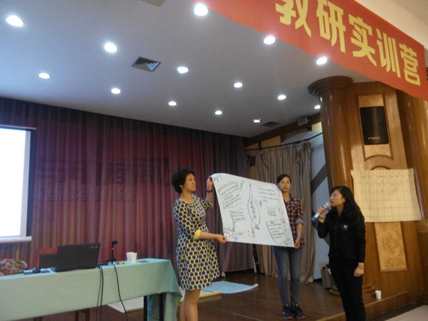 培训结束后,教师代表先后以视频演示等手段,深入浅出地汇报了她们学习得到的新信息、新理念、新方法,并把自己的所感、所思、所悟与老师们进行了互动交流。“班级特色文化”“环境材料提供”“创意美术活动”“主题活动”“体验式教研”一个个精彩的互动分享,让教师们津津有味、乐在其中。教师们普遍认为:每一次的培训学习,在教育理念和做法上都有新的领悟和收获,对自己工作都有非常大的推进和转变,并且加快了自己的专业成长,真的是让每位教师把困惑变成收获,把收获变成反思,在反思中稳步前行。