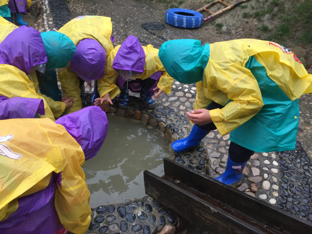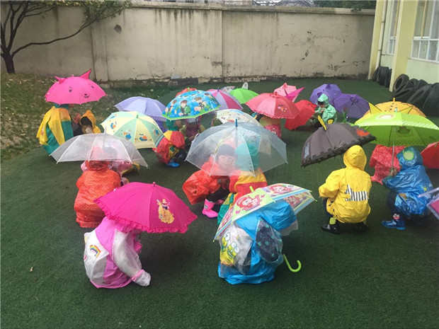 近阶段,小雨不断,几乎所有的活动,都只能在室内开展。孩子们常常抱怨下雨的日子太没劲儿,不能出去玩,不能在幼儿园里奔跑、玩耍......而望着外面透明的雨,孩子们又有一种冲动,好想出去用小手接接雨滴、在小雨中奔跑、踩踩地上积水,去林中打雨仗.......为了满足孩子们的好奇心,丰富他们的生活经验,感受雨中游戏带来的乐趣,我们开展了一些雨中游戏!
