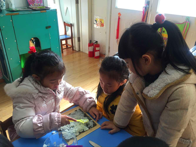 孩子们对寿司有一定的了解,通过外形,味道我们一起回味了寿司,寿司的话题一展开孩子们就炸开了锅,海苔味的、鱼子酱味的、甜的、辣的,孩子们的表情兴奋不已。寿司活动一经开展受到了家长们的一致认可。