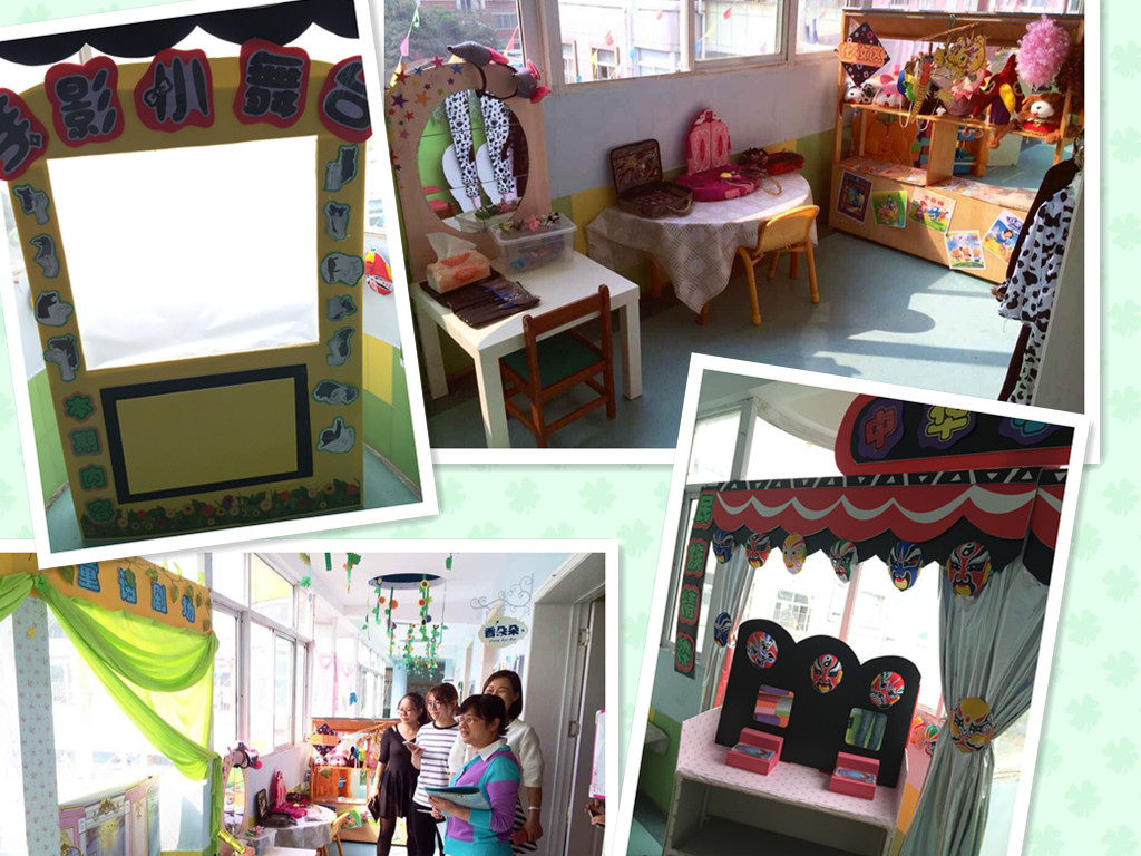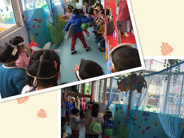 本次观摩活动,娑幼结合是结合园教学特色混龄教育开展的混龄表演游戏,大班幼儿带着中班小班弟弟妹妹表演了童话剧《灰姑娘》《水族馆》,手影表演《金色的房子》等等。老师们精心设计了表演区域,制作水草、大树、房子、小河、乌龟壳等半成品道具供孩子们进行创造性的使用。孩子们根据自己的喜好自主选择区域、选择角色、制作道具,用他们特有的、童趣的语言和动作进行创造性的表演,有效提高了自己的语言表达能力、动手操作能力及与人合作的能力。