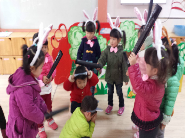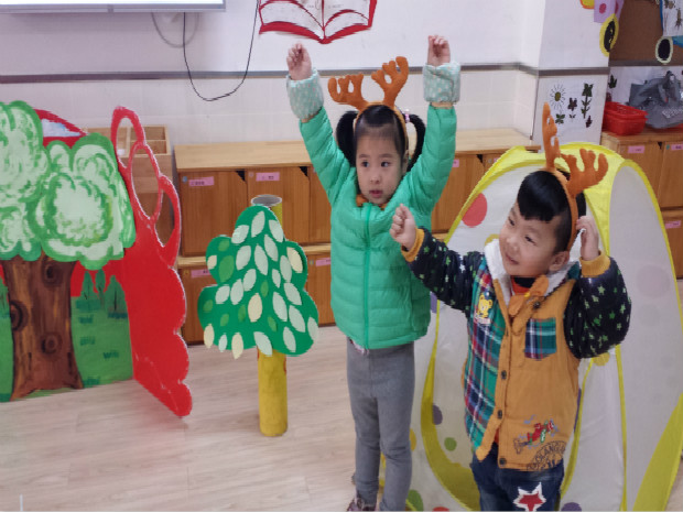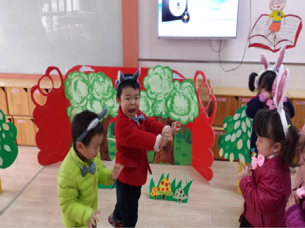 为使我园区级课题——《主题背景下儿童戏剧活动内容开发与实施策略》的研究科研项目落实到位,提高幼儿语言表达能力和故事表演能力,增强幼儿自信心与合作能力,我园“小剧场”拉开了帷幕,每个楼层都有精心布置的小剧场,从而让孩子们能在充满意境的故事情景中尽情表演。首先以经典故事《大鹿和小兔》为开篇,老师们将短小而有趣的故事进行改编、创新,加工成了一个精彩而又蕴含教育寓意的表演剧。