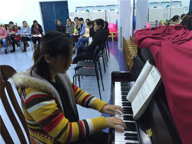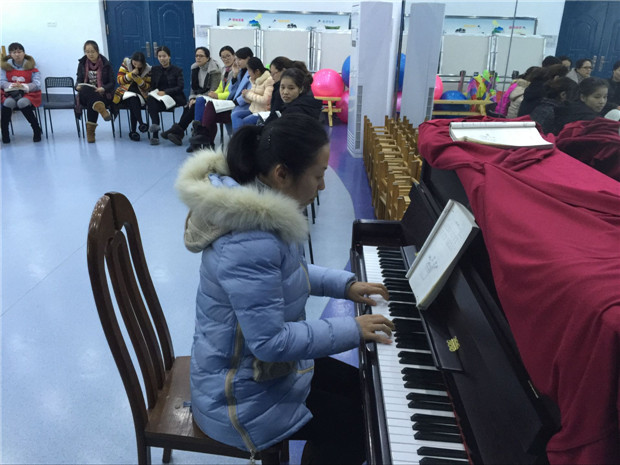 为加强幼教师资队伍建设,提高全园教师的教学技能,激励教师重视和坚持基本功练习,2015年12月4日上午,我园进行了一次有意义的岗位练兵活动——弹唱技能展示活动。全体教师以现场抽签的形式边弹边唱,重点考察教师对所教年龄段艺术领域知识的把握情况。