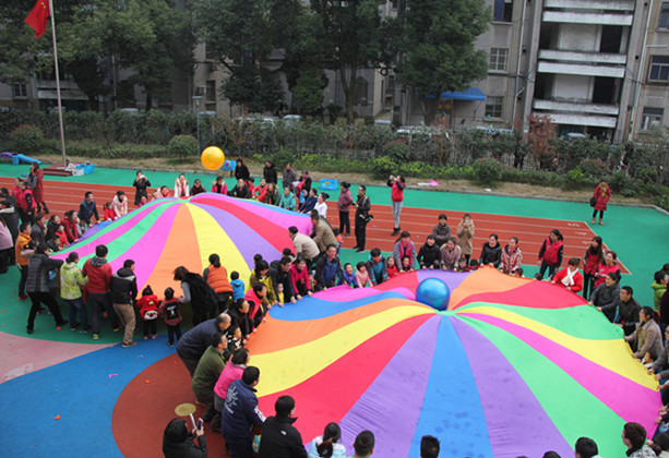 运动会在老师们动感十足的开场舞中拉开了帷幕,她们个个活力四射,热情如火。看那!孩子们变成了一个个“神州C号”,飞的可高可远了; “我有一块口香糖,一粘黏到小手上”,小小的“口香糖”把宝贝和爸爸妈妈的心紧紧的粘在了一起;神奇的“溜溜布”成了孩子们愉快的乐园,他们开心的在里面钻呀,爬呀,一张张笑脸洋溢着的笑容让我感到无比的幸福;美丽的“彩虹伞”在大家的齐心协力将“龙珠”送上天空;神奇的“魔法报纸”一会儿变成了雨伞,为孩子们遮风挡雨,下一秒又变成了一条长长的龙,自由的遨游在空中,转瞬间又神奇的变成了雪花,洋洋洒洒的飘落身旁。