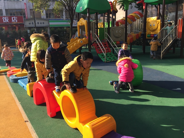快乐的一天就这样在运动中开始了,孩子们自主选择自己喜欢的活动,孩子们时而钻、时而跳、时而跑,玩得不亦乐乎。教师们对晨间锻炼活动进行科学合理的组织与调控,使孩子们得到了积极有效的锻炼。这种开放式的锻炼,让孩子们不再局限在规定的一方小天地,不再在老师的指挥棒下运动,他们可以玩到更多的器具,真正做晨间锻炼的主人。这样的锻炼模式让“我不想玩”的孩子没了,更多的孩子在奔跑,在欢笑。幼儿园的早晨呈现出健康、活泼、向上的氛围!