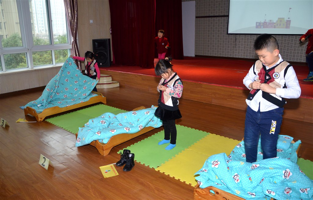 此次比赛分为大班、中班、小班三个年龄组,在班级预选赛的基础上,每班选出5名种子选手参加比赛,根据幼儿的年龄特点和发展水平制定比赛项目!比赛尚未开始,孩子们的热情已空前高涨,随着“预备,开始”一声令下,参赛的小朋友们在同伴的“加油”声中快速地穿衣裤、鞋子,迅速地穿戴整齐;再瞧叠被子的小朋友,他们也毫不示弱,个个争先恐后、手脚麻利地把被子叠得整整齐齐,赢得了同伴和老师的称赞。
