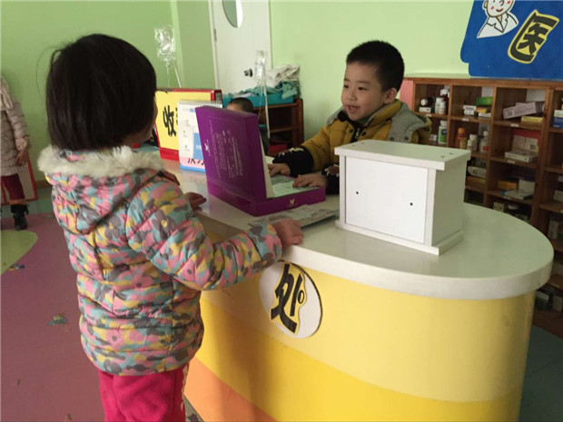 来到角色游戏室里,总能听到孩子们欢乐的笑容。游戏室里有小医院、美容院、小超市、麦当劳和小银行等,孩子们可以自由选择自己喜欢的角色进行游戏:小医生给病人看看病;去麦当劳里买点好吃的;当美容院洗洗头;再去银行存点钱。孩子们一个个都很投入在自己的角色中,玩得非常开心。