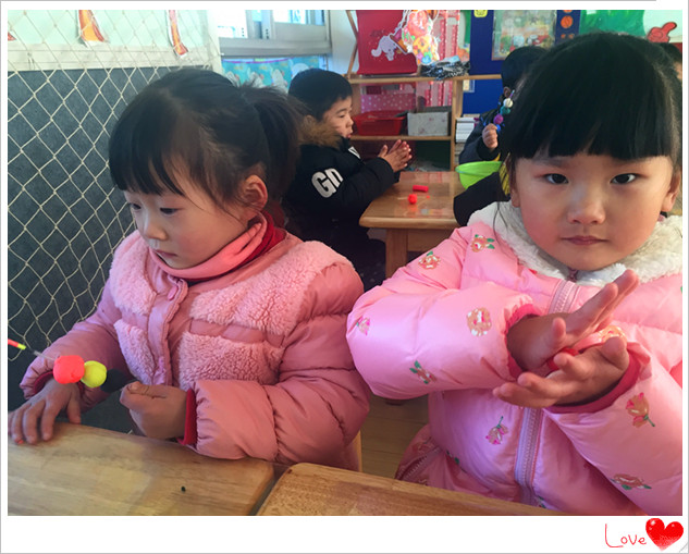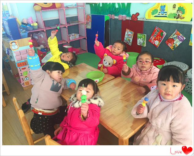 通过开展此次活动,幼儿不但学会了用小棒和橡皮泥制作糖葫芦,而且还体验了制作糖葫芦带来的乐趣。对于小班幼儿来说,做出来的东西美不美、像不像是次要的,感受到了快乐才是最重要的。