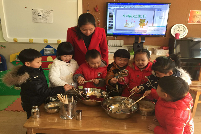 冬日的冷风呼呼而吹,红梅幼儿园中四班的教室里却是一片喜气洋洋,一场“厨房交响曲”正在热闹上演。