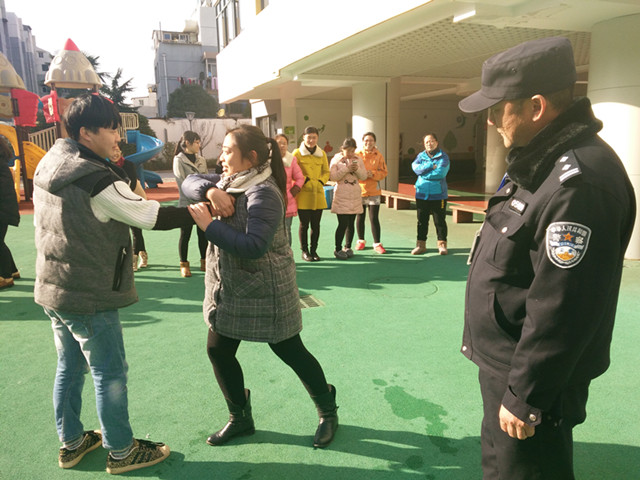 近日,丽华第三幼儿园邀请天宁区朝阳派出所的民警同志走进幼儿园,定期举行了防恐防暴专业培训演练,借以进一步检验和提升本园对突发性暴力事件的反应和处置能力,确保校园和谐稳定,为平安校园护航。