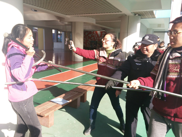 随后,派出所的民警同志详细讲解了盾牌、警棍、抓捕器等专业反恐防暴器材的使用要求,对老师及保安人员进行了实地的操作与演练。