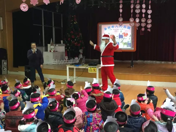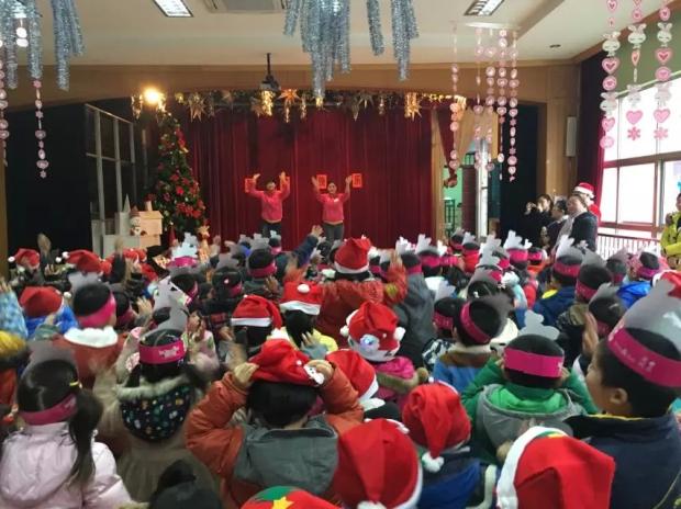 为了在园内营造圣诞节的气氛,在圣诞前夕,园内就布置了圣诞树,精美可爱的小饰物将幼儿园装扮成了圣诞的乐园。平安夜当天, 由化龙巷的工作人员扮演成圣诞老人,为孩子们讲述圣诞小故事,和孩子们一起玩游戏、跳舞、唱圣诞歌,并给孩子们送上他们期待已久的圣诞礼物。孩子们的快乐尽情挥洒,整个活动自始至终都洋溢着欢乐祥和的节日气氛,欢歌笑语不断,掌声喝彩不绝!