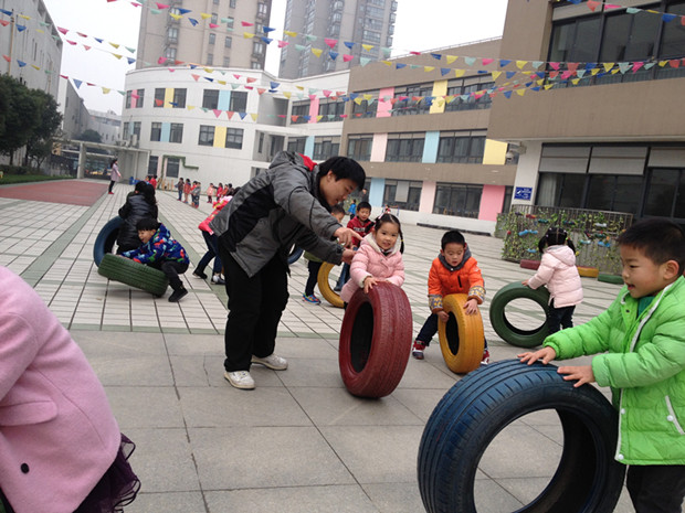 在近期的户外活动中,两位男幼师都积极地参与进去,与孩子们打成一片。他们用男性特有的爽朗与热情让孩子们的游戏热情更加高涨,乐此不疲。同时,男幼师们也将在校期间学习的理论运用到实践中去,开发出了许多新的玩法,瞧,简单的轮胎在他们的游戏中既可以滚,又可以跳,还可以走……孩子们玩得不亦乐乎。