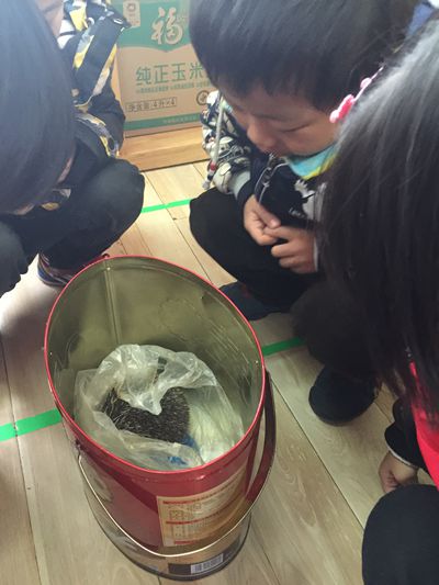 冬日,家长在草丛中发现一位动物朋友——刺猬,到来幼儿园给孩子们观赏。今天,我们带孩子观察了刺猬,并给孩子介绍了刺猬的特征、生活习性以及如何保护等,孩子们对刺猬很感兴趣,真是喜欢的不得了并亲自喂刺猬吃果子。