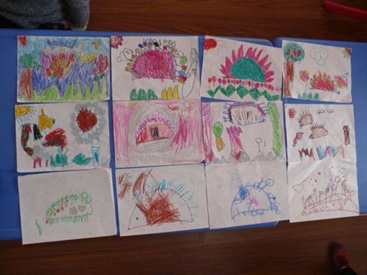 观察完刺猬,孩子自发的进行了绘画、手工活动,经过仔细观察,画出的刺猬形态逼真,捏出的刺猬也是栩栩如生。通过这次活动,我们觉得只有让孩子贴近大自然,亲身感受才会激发孩子的心灵,让孩子发自内心地做出自己的作品。此时,无论作品如何都不重要,重要的是孩子们学习的兴趣、激情与乐趣都常溶入其中。