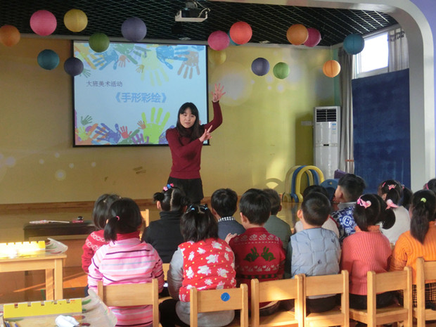 骨干教师的示范教学活动为年轻教师提供了丰盛的教学“大餐”。她们以自己娴熟的教学技巧、生动而又自然的教学形式,为大家分别展示了不同风格的教学活动。张丽娟老师执教的《手形彩绘》,利用手掌、手指的形态,通过彩绘这一形式和创作方法,让孩子发挥想象,体验了创作的乐趣。夏丽华老师执教的《太阳和月亮》,通过一首简单而有趣的诗歌,运用图片与音乐合一的视听形式,营造美的氛围,不露痕迹地引导孩子感受“白天真热闹、夜晚静悄悄”王益媛老师执教的《快乐的蒙古文人》,引导小朋友用身体动作来表现挤奶、摔跤、射箭、拉马头,感受蒙古乐曲热情奔放的曲风,感受蒙古人与小马之间快乐和谐的美妙情感。这些课形式新颖、构思巧妙,都让年轻教师的眼前一亮。